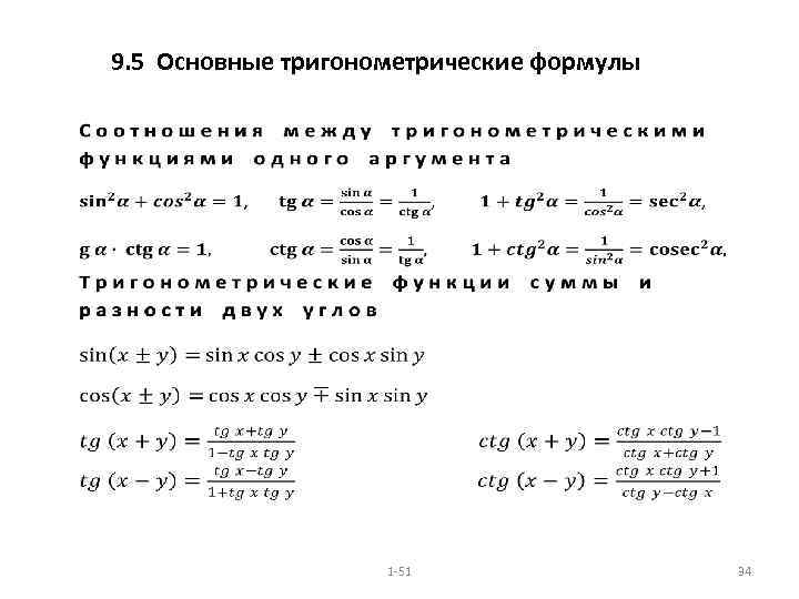 9. 5 Основные тригонометрические формулы 1 -51 34
