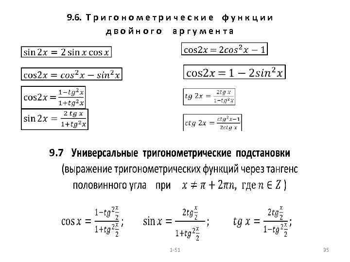 9. 6. Т р и г о н о м е т р и ч е с к и е ф у н к ц и и д в о й н о г о а р г у м е н т а • • 9. 7 1 -51 35