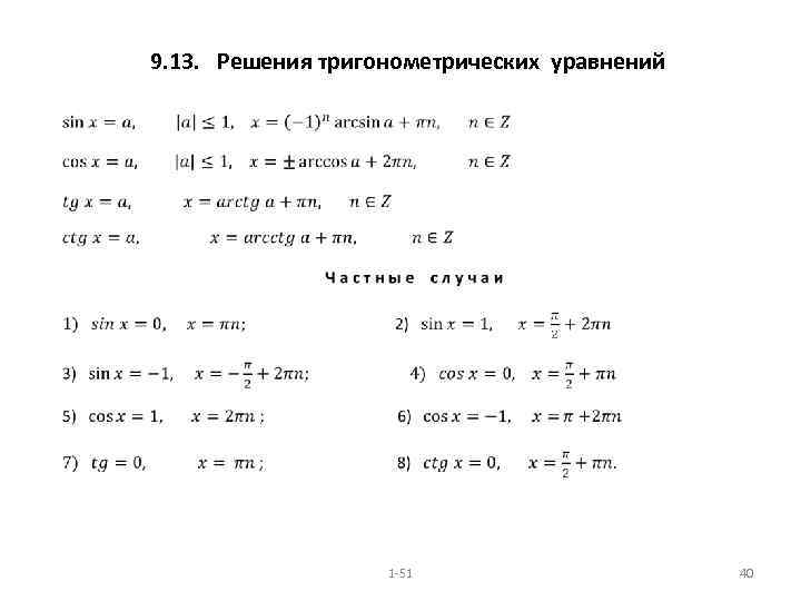 9. 13. Решения тригонометрических уравнений • 1 -51 40