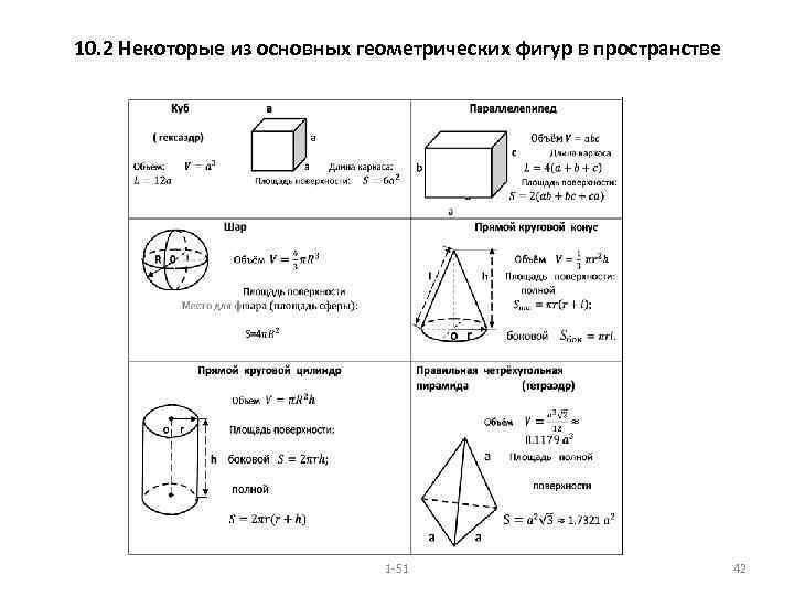10. 2 Некоторые из основных геометрических фигур в пространстве 1 -51 42