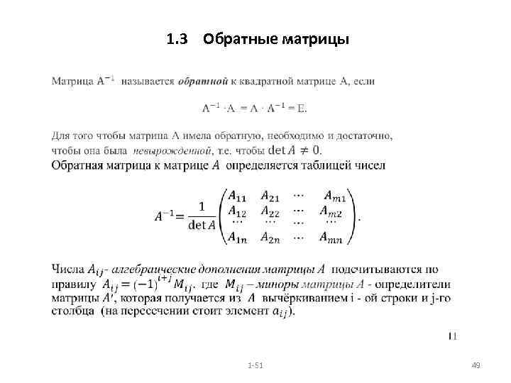 1. 3 Обратные матрицы 1 -51 49
