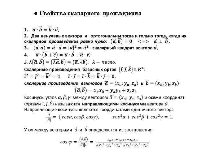 ● Свойства скалярного произведения