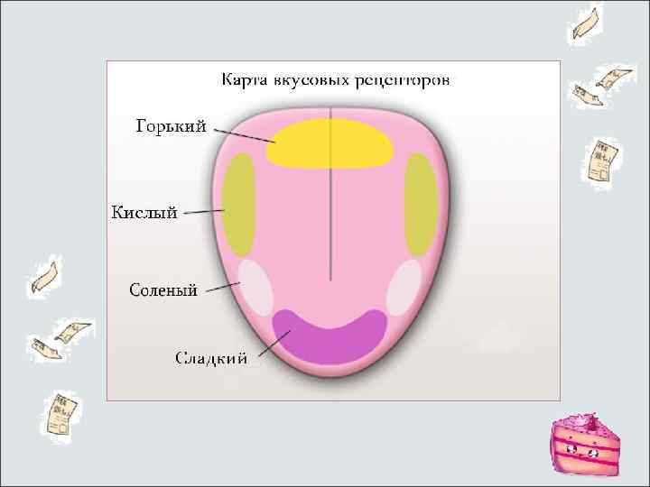 Функции языка многообразны. Он активно участвует в процессе обработки пищи в полости рта, способствуя ее перемещению при жевании, перемешиванию со слюной, обеспечивает вместе с мягким небом и глоткой проглатывание пищевого комка. Движения мышц языка принимают участие в формировании звуков речи, а также музыкальных звуков, оказывают влияние на артикуляцию и тембр голоса. В слизистой оболочке языка, ее сосочках сосредоточена основная часть рецепторного аппарата органа вкуса. Различные участки поверхности языка обладают неодинаковой чувствительностью к вкусовым раздражителям. Так, к горькому вкусу более чувствителен корень языка, к кислому — края, к соленому — края и кончик, к сладкому — кончик языка.