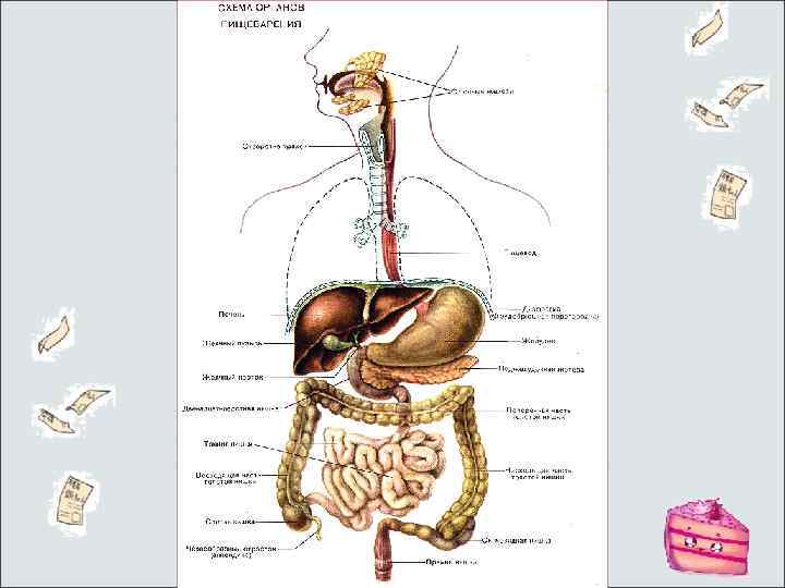 Одним из основополагающих процессов обмена веществ является процесс пищеварения, в результате которого происходит превращение пищи в необходимые организму энергию и тепло. Пищеварительная система состоит из: 1. Полость рта; 2. Язык; 3. Пищевод; 4. Желудок; 5. Печень; 6. Желчные протоки; 7. Желчный пузырь; 8. Двенадцатиперстная кишка; 9. Поджелудочная железа; 10. Тонкая кишка; 11. Толстая кишка; 12. Аппендикс.