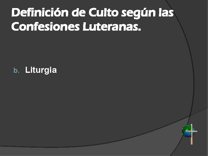 Definición de Culto según las Confesiones Luteranas. b. Liturgia