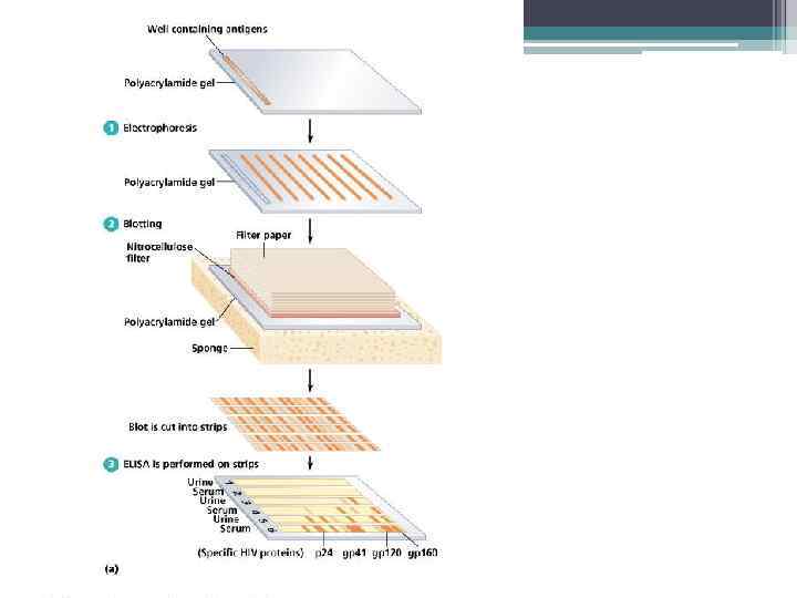 Иммуноблоттинг После разделения сложной смеси белков мето электрофореза в полиакриламидном или агарозномгеле их можно перенести из геля н Схема иммуноблотинга микропористую нитроцеллюлозную мембрану. Далее неспецифически связанные с мембраной антигены могут быть идентифицированы помощью меченых антител. Данный метод получил широкое распространение. Например, он используетс для идентификации компонентов нейрофиламентовкоторые предварительно , разделяют в полиакриламидном геле в присутствии додецилсульфата натрия (ДСН).