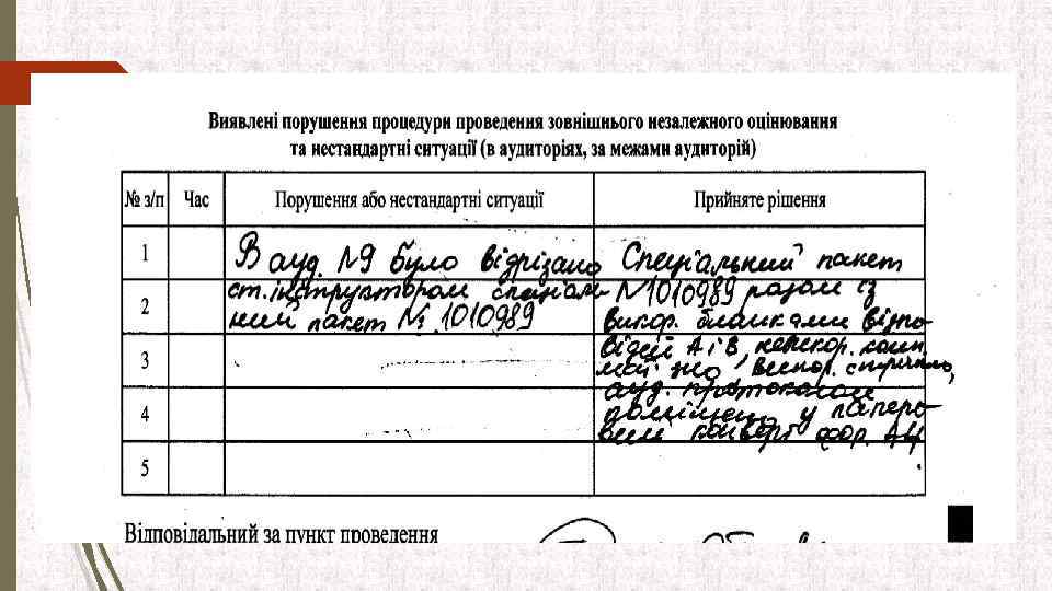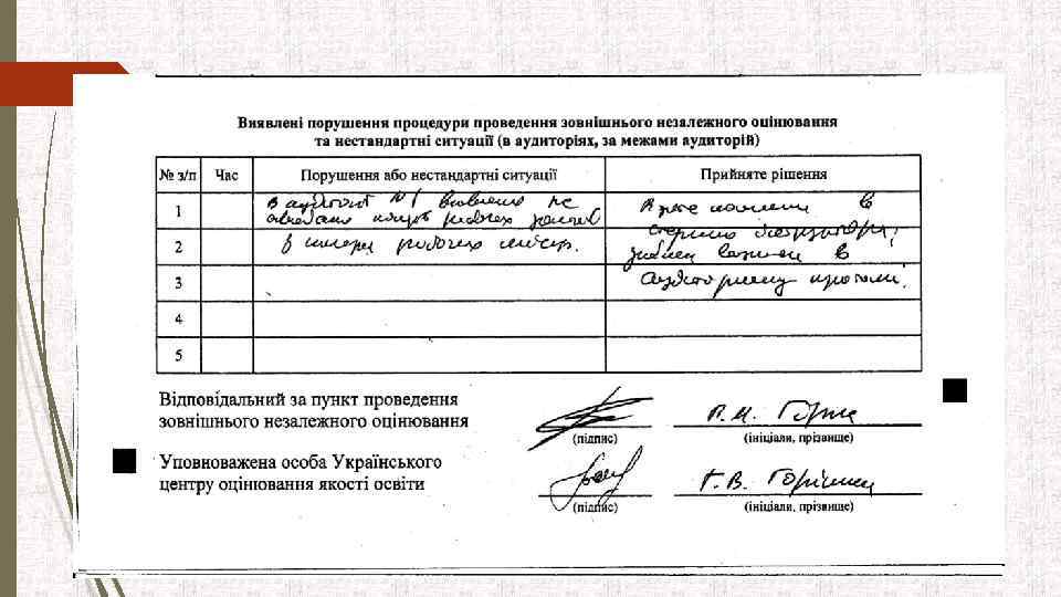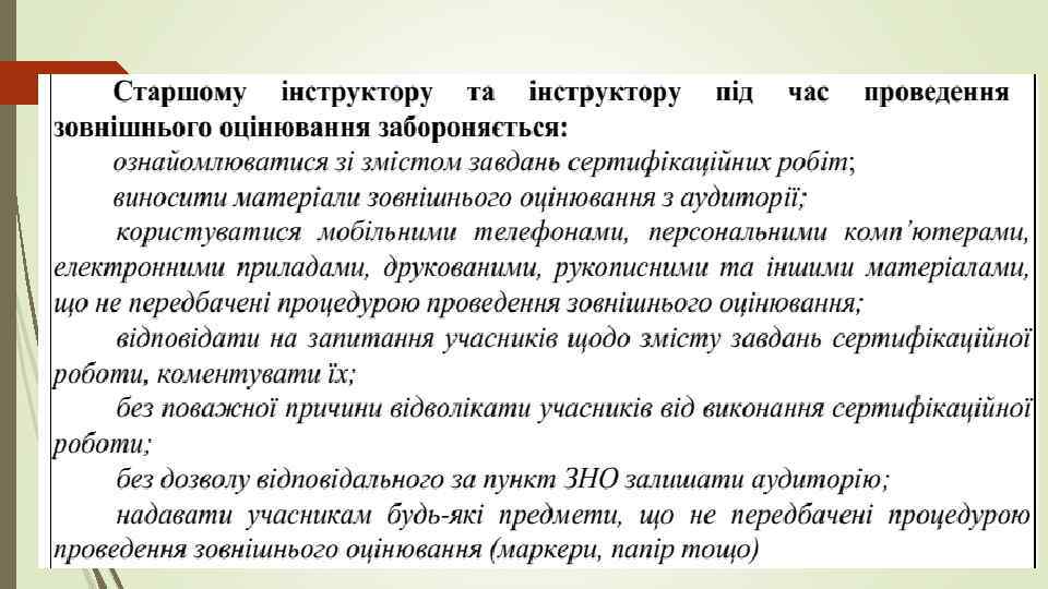 Нарада ІІ (10. 30 – 10. 50) Старші інструктори У присутності відповідального за пункт ЗНО, уповноваженої особи УЦОЯО, старших інструкторів і громадських спостерігачів: