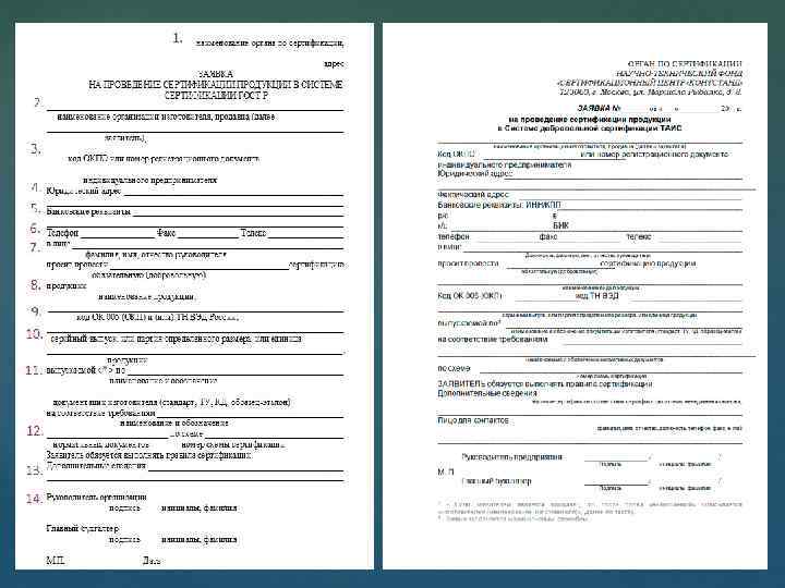 Виды форм заполнения заявок на проведение сертификации