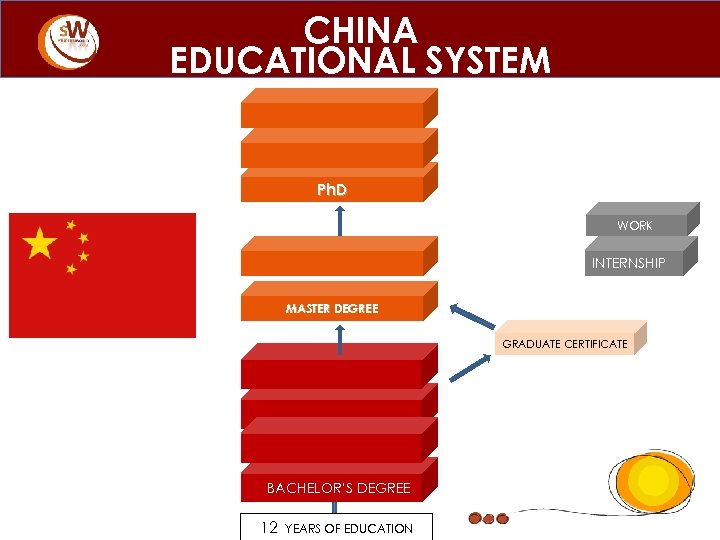 CHINA EDUCATIONAL SYSTEM Ph. D WORK 2° YEAR MASTERS IN RESEARCH INTERNSHIP MASTER DEGREE GRADUATE CERTIFICATE BACHELOR’S DEGREE 12 YEARS OF EDUCATION