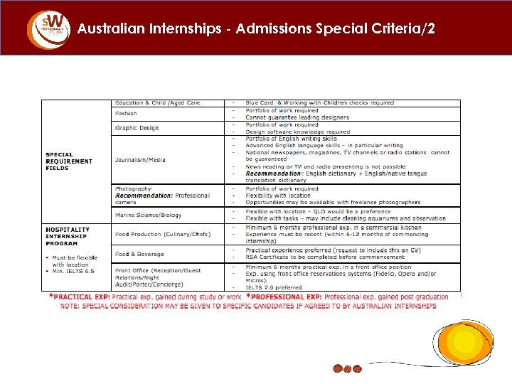 Australian Internships - Admissions Special Criteria/2