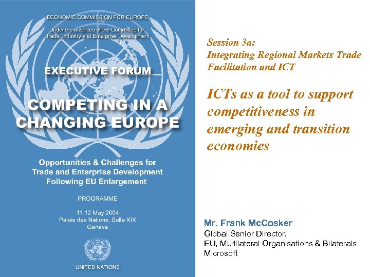 Session 3 a: Integrating Regional Markets Trade Facilitation and ICTs as a tool to support competitiveness in emerging and transition economies Mr. Frank Mc. Cosker Global Senior Director, EU, Multilateral Organisations & Bilaterals Microsoft