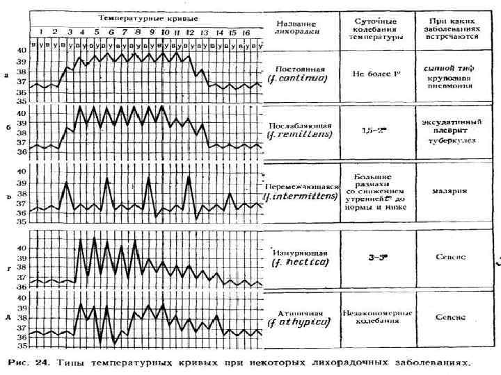 Возвратная лихорадка — характеризуется чередованием периодов повышения температуры с периодами нормальной температуры, которые длятся несколько суток ( при возвратном тифе).