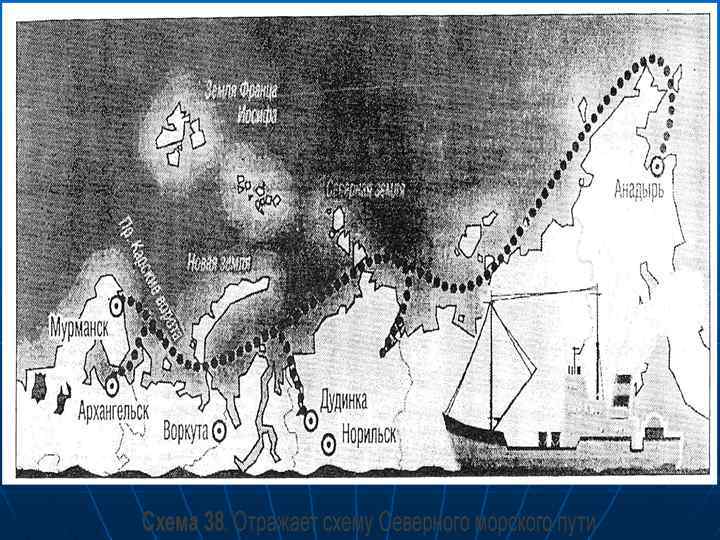Север – важнейший военностратегический регион страны n n n 90 % морских границ России – это северные границы. Арктика – единственный регион России, где мы еще представлены на равных с США (схема). Геополитическое значение Севера особенно возросло после распада СССР, с утратой портов Балтийского, Черного и Каспийского морей. Вопрос сегодня многие ставят так: Кто будет владеть Севером, будет владеть миром, иначе говоря, от того. какая будет выбрана стратегия государства по развитию Севера, во многом зависит будущее страны в целом.
