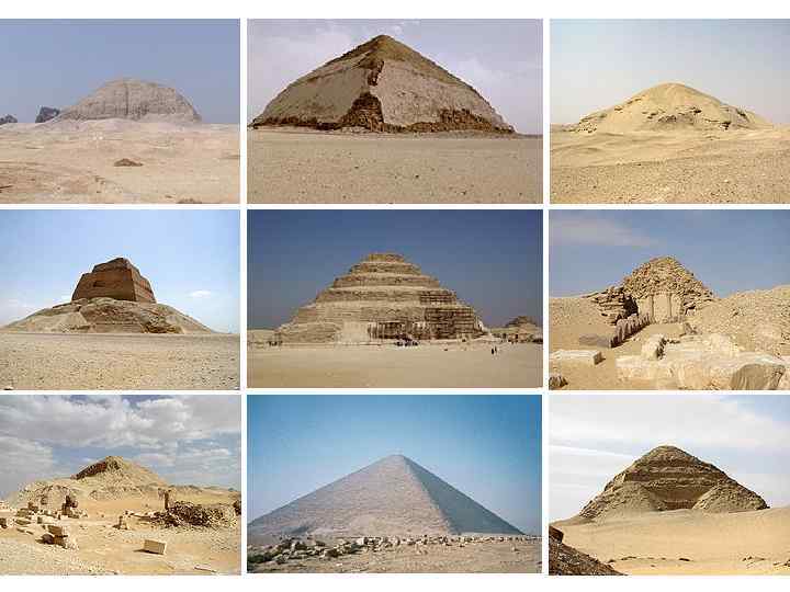 ПИРАМИДЫ В ГИЗЕ Египетские пирамиды — величайшие архитектурные памятники Древнего Египта, среди которых одно из «семи чудес света» — пирамида Хеопса и почётный кандидат «новых семи чудес света» — Пирамиды Гизы. Пирамиды представляют собой огромные каменные сооружения пирамидальной формы, использовавшиеся в качестве гробниц для фараонов Древнего Египта. Слово «пирамида» — греческое, означает многогранник. По мнению одних исследователей, большая куча пшеницы и стала прообразом пирамиды. По мнению других учёных, это слово произошло от названия поминального пирога пирамидальной формы. Всего в Египте было обнаружено 118 пирамид (на ноябрь 2008 года).