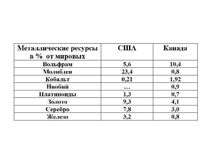 Ресурсная база Северной Америки