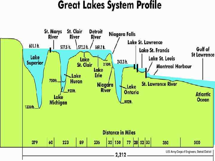 Озеро Мичиган Четвёртое по величине пресное озеро в мире; Площадь 58 тыс. км². Озеро Онтарио Самое маленькое в системе Великих озёр; Площадью 20 тыс. кв. км. ; Р. Св. Лаврентия соединено с Атлант. океаном. Озеро Эри Десятое по величине пресное озеро в мире; Площадь 26 тыс. км².