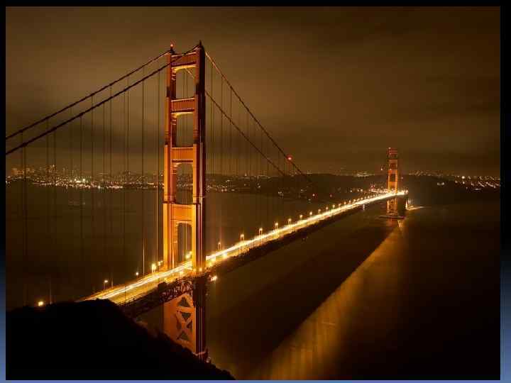 Золотые ворота Золотые Ворота – это висячий мост в США, соединяющий два берега одноименного пролива Золотые Ворота. Пожалуй это один из самых узнаваемых мостов в мире. Он соединяет город Сан-Франциско и южную часть округа Марин.