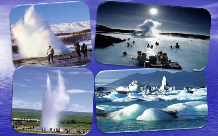 Исландия Своим рельефом выделяется Исландия, страна «льда и огня» . Здесь много действующих вулканов и гейзеров