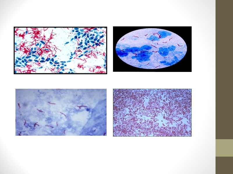 Микобактерии или разбросаны по препарату единичными экземпляра или встречаются небольшими кучками. Длина их различна – от 0,002 до 0,006 мм. Большей частью бактерии прямые, иногда же они изогнуты, как бы надломлены, иногда состоят из отдельных зерен. прямая (простая) микроскопия (окраской по Цилю – Нильсену) позволяет обнаружить микобактерии при их содержании более 5000-10000 микробных тел в 1мл материала. Метод : быстрый, простой, эффективный; позволяет визуализировать возбудителя, но не позволяет дифференцировать МБТ от атипичных микобактерий.