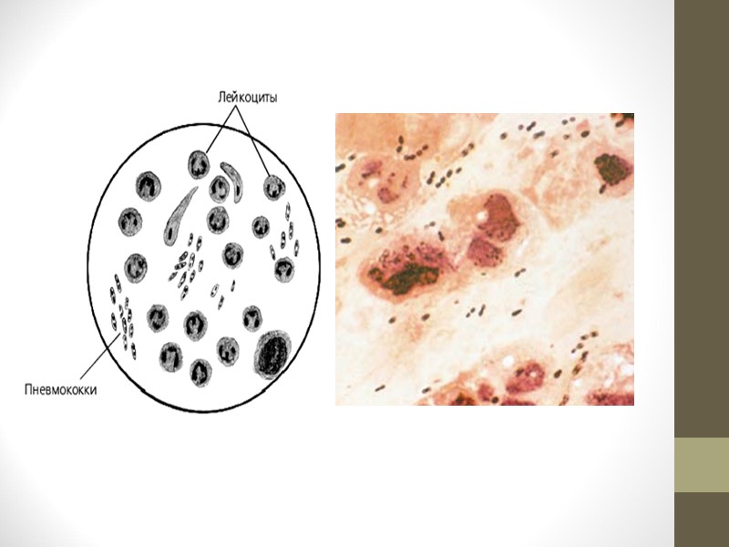 А) Пневмококк (диплококк Френкеля) (Pneumococcus). Пневмококк. Диплококк ланцетовидной формы. Два кокка, из которых он состоит, обращены друг к другу тупыми концами, тогда как свободные концы их заострены или вытянуты в виде пламени свечи. Иногда встречают диплококки, состоящие из двух правильно овальных или даже круглых кокков. При благоприятных условиях можно обнаружить кап-улу, окружающую каждую пару кокков. Пневмококк неподвижен, окраска по Граму положительна. Для обнаружения пневмококка в мокроте исследуют тонкий мазок, окрашенный по Граму. Пневмококки в таком мазке окрашены в темно-фиолетовый цвет в отличие от клеточных элементов и фона окрашенных в дополнительный розовый цвет. Бактериоскопическому исследованию можно придавать значение лишь в тех случаях, в которых пневмококк содержится в большом количестве, как в чистой культуре.
