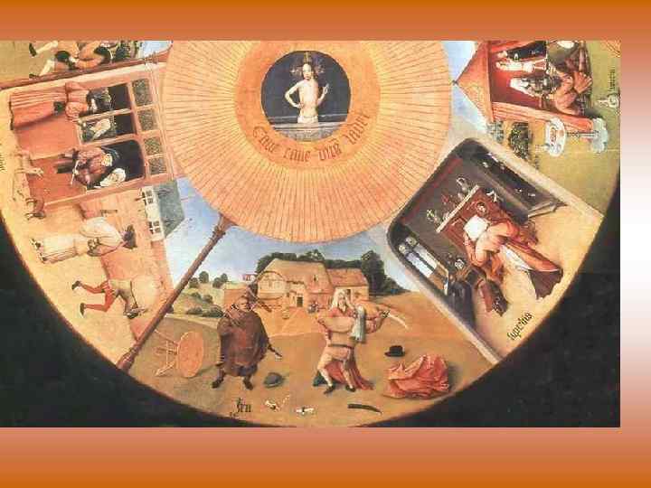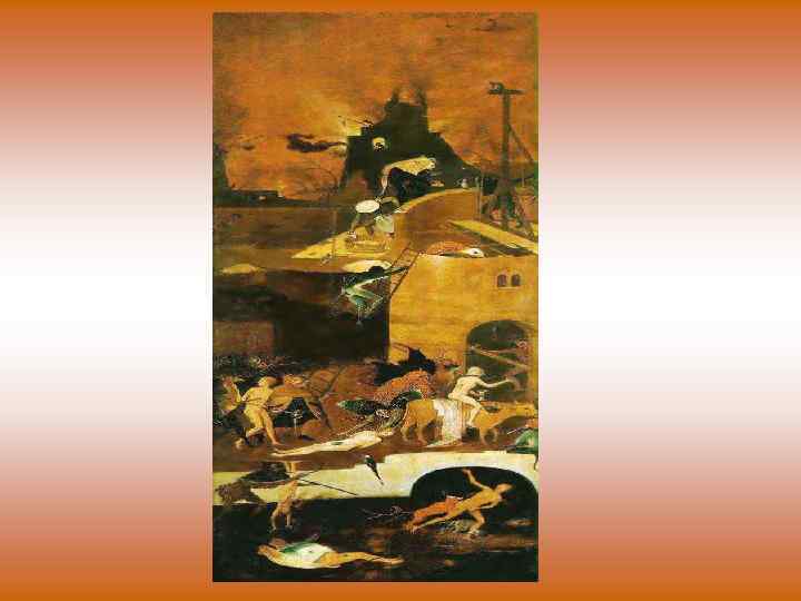 Иероним Босх (около 1460 -1516 гг. ) • Его творчество отличается своеобразием, субъектным мироощущением. Одни считают его еретиком, другие – религиозным ортодоксом, третьи мрачным мизантропом, четвертые – человеком с очень развитым ироничным складом ума, пятые – безумцем с болезненным воображением, шестые – мистиком. Понять творчество этого художника можно лишь через противоречие эпохи Возрождения в целом и конкретной страны в частности. Босх как бы стоит на грани двух великих эпох европейской культуры: средневековья и Ренессанса. И все противоречия этой эпохи воплотились в творчестве мастера.