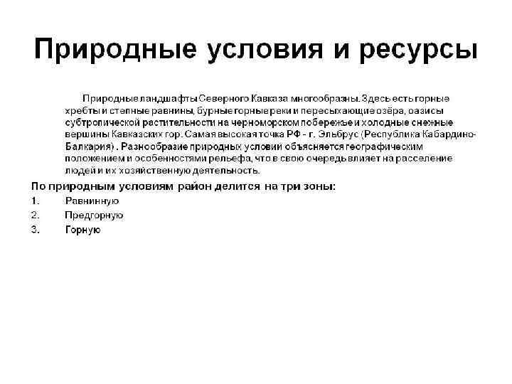 Северо Кавказский экономический район Природные условия и ресурсы