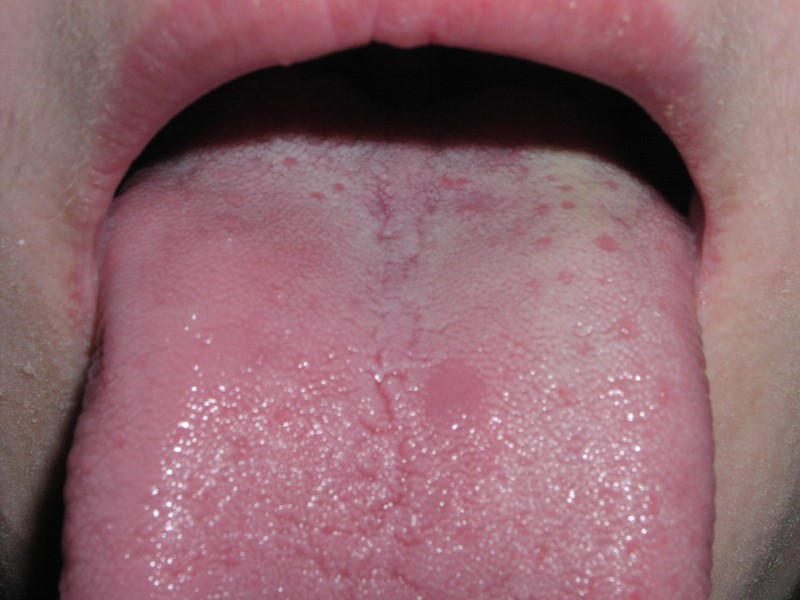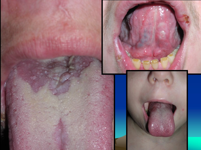 «Лоснящиеся папулы» и «скошенный луг» на языке Нет острых воспалительных явлений