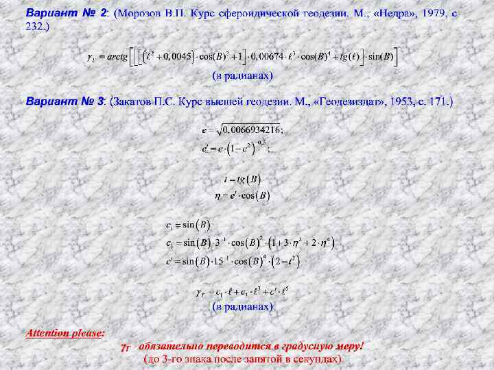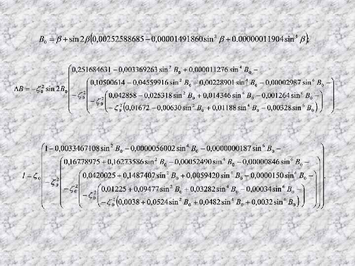Сфероидическая геодезия Лабораторная работа на тему: «Преобразование координат» 1. 2. Задание: Преобразовать геодезические координаты (B; L) всех углов сферодической трапеции (смотри задание по «Картографии» ) в плоские прямоугольные координаты (X; Y) на проекции Гаусса-Крюгера. Для контроля осуществить обратное преобразование координат. 2. Вычислить значения гауссова сближения меридианов (gгаусса) для тех же точек.