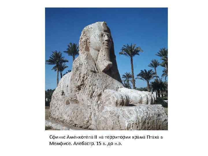 Сфинкс Аменхотепа II на территории храма Птаха в Мемфисе. Алебастр. 15 в. до н. э.