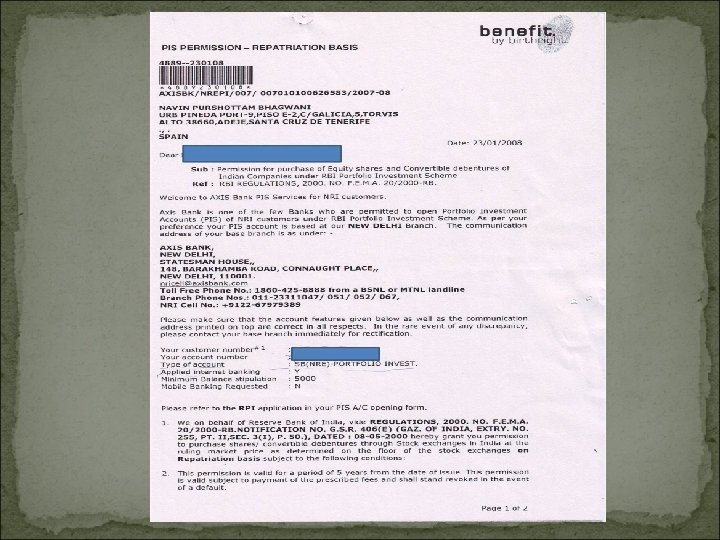 Who is an NRI/PIO? • Non- Resident Indian [NRI] means a ‘person resident outside India’ who is a citizen of India by virtue of constitution of INDIA. • ‘Person of Indian Origin’ (PIO) means a citizen of any country other than Bangladesh or Pakistan, if – A. he at any time held Indian passport; or – B. he or either of his parents or any of his grandparents was a citizen of India by virtue of the Constitution of India or the Citizenship Act, 1955; or – C. the person is a spouse of an Indian citizen or a person referred to in sub-clause [A] or [B].