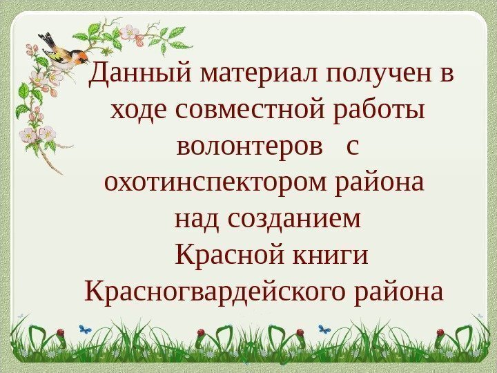 Данный материал получен в ходе совместной работы волонтеров с охотинспектором района над созданием Красной книги Красногвардейского района