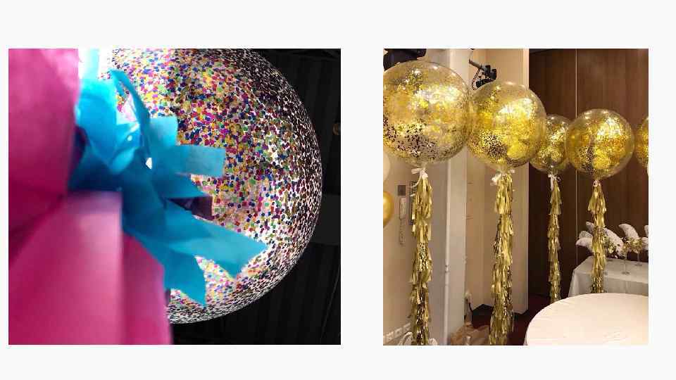 Конфетти - Конфетти ручное для больших шаров - 300 руб/пакет для 1 шара (розовый, красный, голубой, синий, желтый, фиолетовый, оранжевый, черный, белый, зеленый, золото, серебро) - Конфетти ручное для стандартных шаров - 100 руб/пакет для 1 шара Готовые маленькие разноцветные кружочки конфетти: • 200 р для одного большого шара • 50 р для стандартного шарика -Конфетти золотые/серебряные/красные звездочки – 250 руб/пакет для большого шара -Конфетти серебряная/золотая/разноцветная стружка из фольги – 250 руб/пакет для большого шара -Перья (500 руб для большого шара; 250 руб для стандартного)