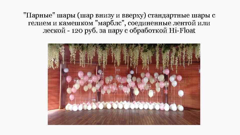 "Парные" шары (шар внизу и вверху) стандартные шары с гелием и камешком "марблс", соединенные лентой или леской - 120 руб. за пару с обработкой Hi-Float