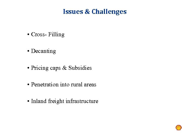 Issues & Challenges • Cross- Filling • Decanting • Pricing caps & Subsidies • Penetration into rural areas • Inland freight infrastructure