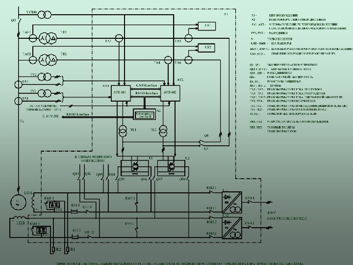 Двухканальное микропроцессорное устройство защит (МУЗА) Максимальная токовая защита выпрямительного трансформатора Защита от недопустимой длительности форсировки ( IF >2. 2 IFn 0. 5 c ) Защита от перегрузки током возбуждения ( I 2 t ) Защита от перегрева выпрямительного трансформатора Защита от потери возбуждения Максимальная защита по напряжению генератора на холостом ходу Защита от неуспешного инвертирования