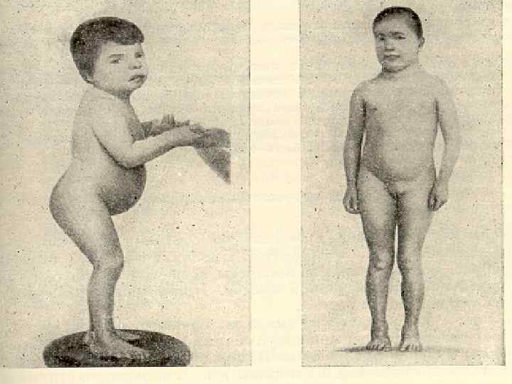 СИМПТОМЫ ГИПОТИРЕОЗА У 36% - начало до 2 -х л. Карликовый рост. Медлительность, апатия. Замедленное развитие двигательной активности. Сухая кожа. Запор. Замедленное прорезывание зубов. Слабый аппетит. Увеличенный язык. Толстый живот. Низкий голос. Холодные конечности. Чувствительность к холоду. Микседема. Жировые подушечки. Желтая кожа.