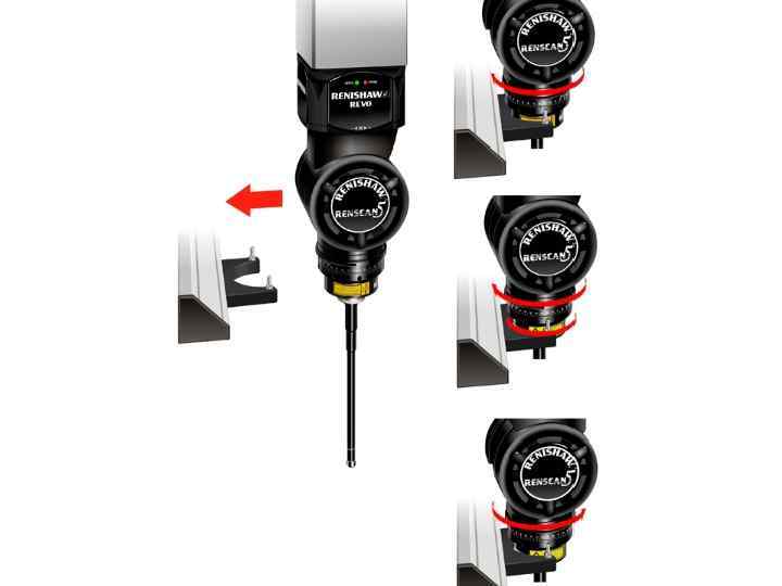 Благодаря использованию стандартного магазина для смены MRS и ячеек RCP смена держателей щупов и датчика SFP 1 теперь выполняется автоматически. Это дает возможность полностью интегрировать процесс измерения шероховатости поверхности в стандартную программу измерений на КИМ. Ячейка SFCP (ячейка оси C) установлена в магазине MRS; в ней предусмотрены подпружиненные стержни, что облегчает поворот оси С используя перемещение оси B головки REVO.
