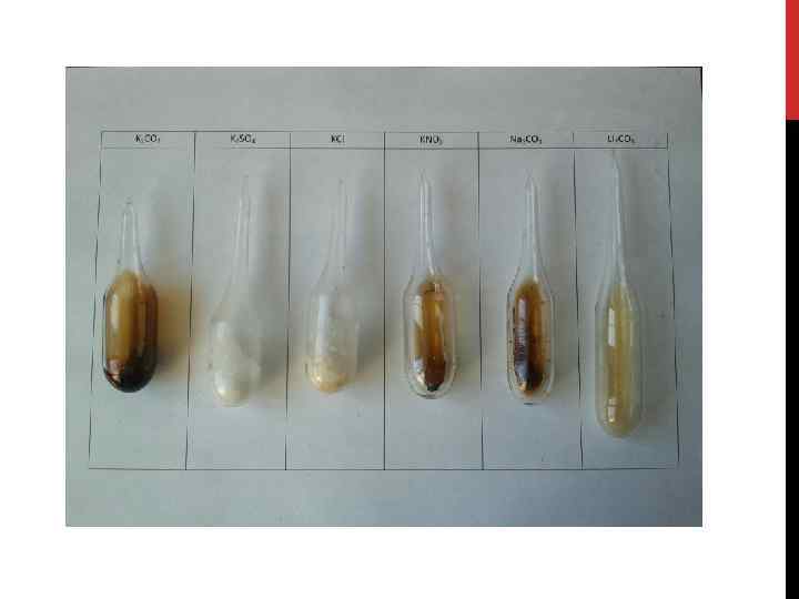CATALYSTS: • potassium carbonate • potassium sulfate • potassium chloride • potassium nitrate • sodium carbonate • lithium carbonate