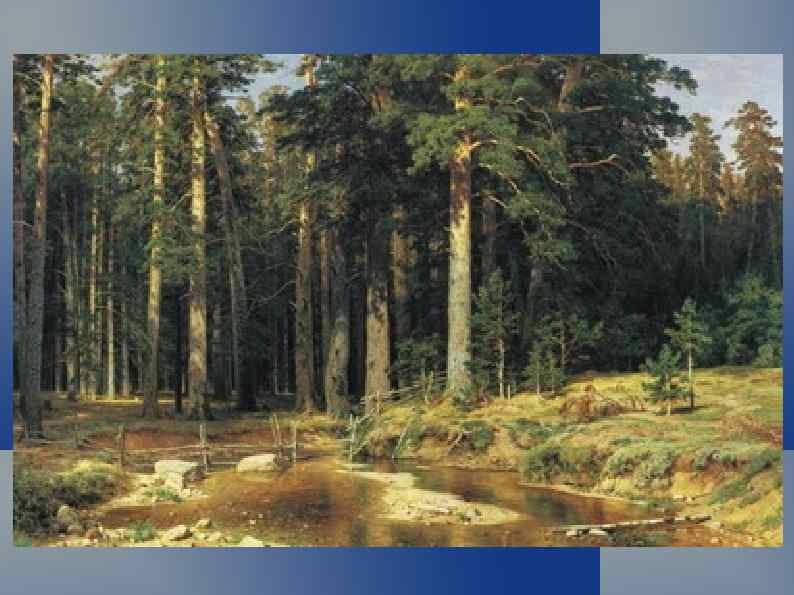 На Первой выставке передвижников наш герой выступает с картинами «Вечер» , «Сосновый лес» и «Березовый лес» , а в 1872 году по этюдам с натуры пишет в мастерской Крамского «Сосновый бор» , оцененный Крамским как «одно из замечательнейших произведений русской школы» . Сосновый лес 1885. Вечер. 1871 г, холст, масло, 71 x 144 см