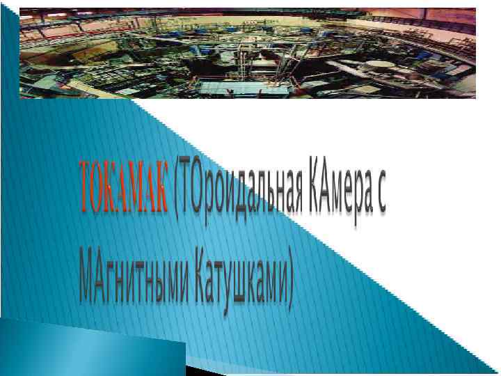 это электрофизическое устройство, основное назначение которого – формирование плазмы. Плазма удерживается не стенками камеры, которые не способны выдержать её температуру, а специально создаваемым магнитным полем, что возможно при температурах около 100 млн. градусов, и сохранение её достаточно долгое время в заданном объеме. Возможность получения плазмы при сверхвысоких температурах позволяет осуществить термоядерную реакцию синтеза ядер гелия из исходного сырья, изотопов водорода (дейтерия итрития