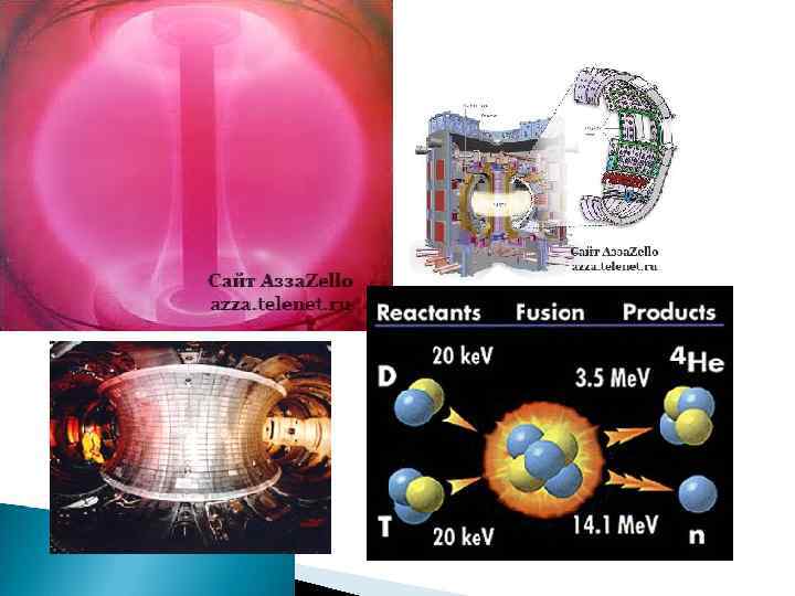 стал реальной угрозой для человечества. В связи с этим ученые предложили добывать изотоп тяжелого водорода дейтерий - из морской воды и подвергать реакции ядерного расплава при температурах около 100 миллионов градусов Цельсия. При ядерном расплаве дейтерий, полученный из одного килограмма морской воды будет способен произвести столько же энергии, сколько выделяется при сжигании 300 литров бензина ТОКАМАК (тороидальная магнитная камера с током)