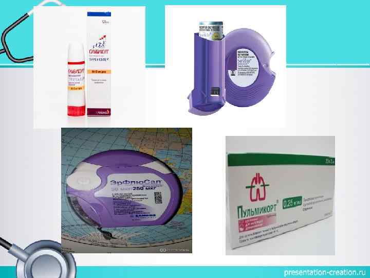 Глюкокортикостероиды Ø Препараты базисного лечения бронхиальной астмы: флутиказон, будесонид, беклометазон. Ø Принимаются постоянно в обязательном порядке. Ø Снимают хроническое воспаление бронхов, тем самым устраняют приступы удушья, одышку, кашель.