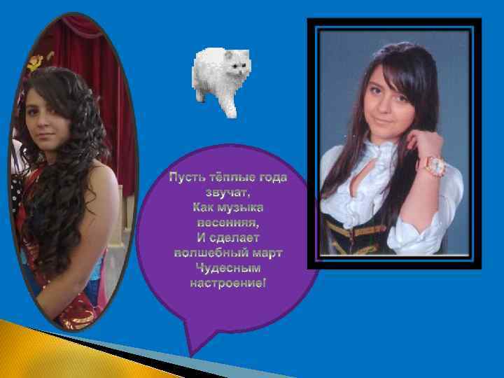 Лучшие ФОТО))) Я поздравляю дам прекрасных С весенним солнцем, пеньем птиц И с синевой высокой, ясной. Пусть украшением Ваших лиц Послужит нежная улыбка, Сиянье ласковое глаз. Пустяк мой дар - всего открытка. Но, знак, что думаю о Вас!