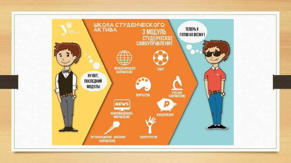 Программа 3 модуля Направления: § § § § Информационное Культурно-массовое Учебное и фандрайзинг Социально-правовое Оргмассовое Спортивное Международное Волонтерское