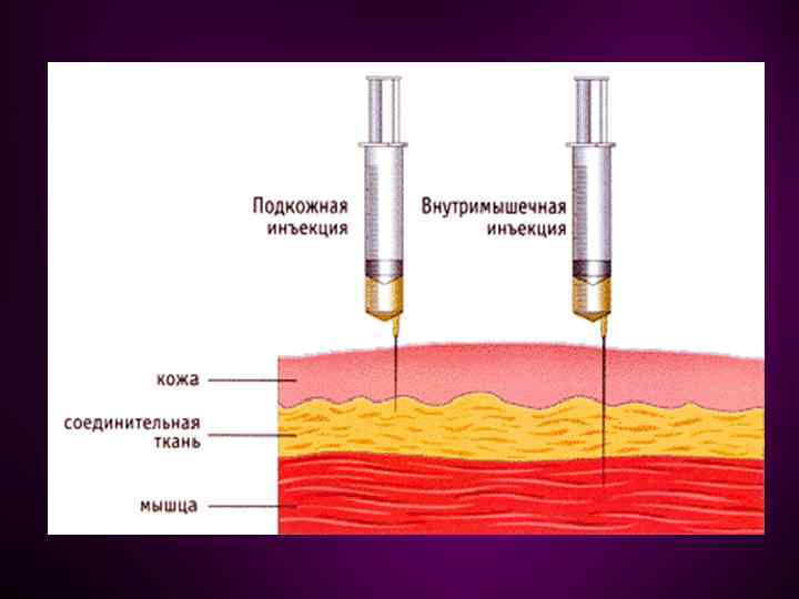 Профилактика и лечение осложнений 1. 2. 3. Инфильтрат Глубокое введение препарата Медленное введение препарата Если раствор масляный, он должен быть разогрет до 38. 0 градусов Лечение инфильтрата Компресс с магнезией, спиртом, димексидом 1: 4 Сухое тепло ( желательно с разрешением врача) Физиолечение (ультрозвук, лазер)