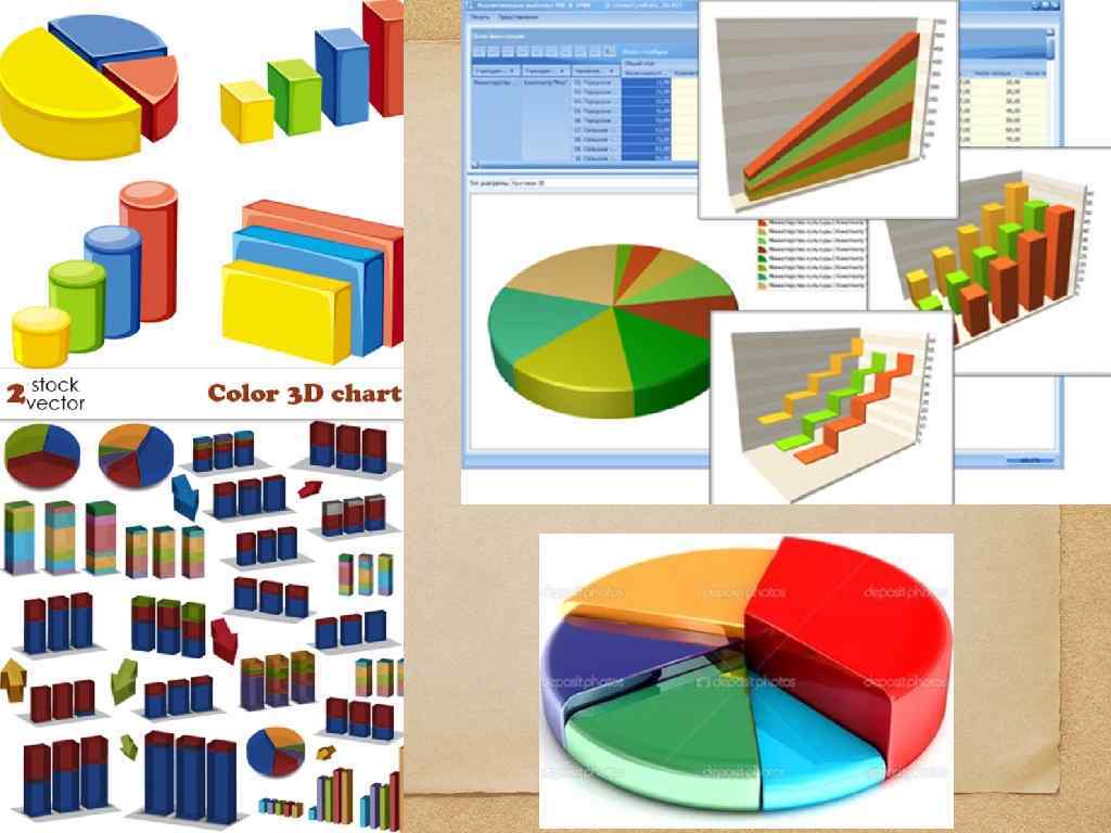 Диаграмм ы Делятся на: столбиковые, квадратные, многоугольные, кубические, круговые, кольцевые, фигурные и объёмные.