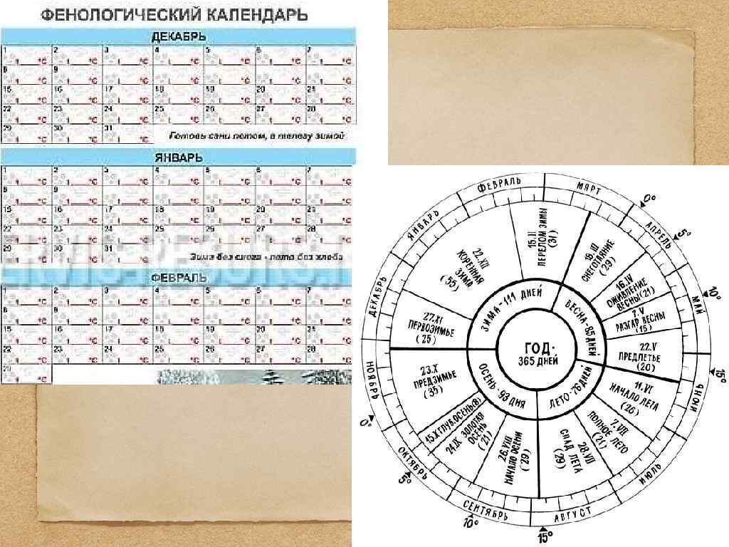 Схемы, календари. Целесообразно отмечать в календаре лишь важнейшие события. Экономико- и физико-географические календари делаются отдельно. Фенологические календари и календари природы ведутся в 6 -8 классах. Наблюдают температуру, облачность, осадки, ветер