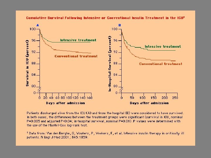 M. Glucose Control 1. Following initial stabilization of patientswith severe sepsis, maintain blood glucose 150 mg/d. L (8. 3 mmol/L). Studies supporting the role of glycemic control have used continuous infusion of insulin and glucose. With this protocol, glucose should be monitored frequently after initiation of the protocol (every 30 – 60 mins) and on a regular basis (every 4 hrs) once the blood glucose concentration has stabilized. Grade D 2. In patients with severe sepsis, a strategy of glycemic control should include a nutrition protocol with the preferential use of the enteral route. Grade E