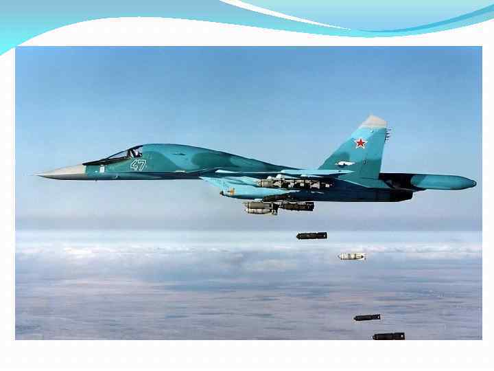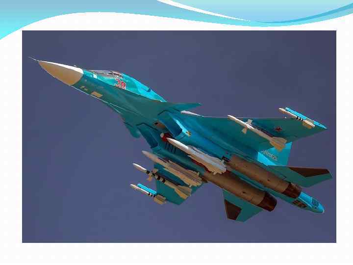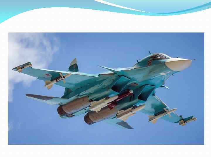 Су-34 российский многофункциональный истребитель-бомбардировщик, также позиционируемый как фронтовой бомбардировщик, разработанный для нанесения ударов авиационными средствами поражения по наземным целям в любых метеорологических условиях днём и ночью.