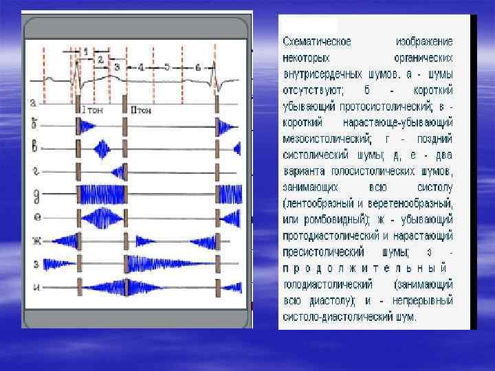 § Движение крови через полости здорового сердца, его физиологические отверстия происходит только с образованием тонов. § Дополнительные звуковые явления, выслушиваемые над областью сердца, называются шумами